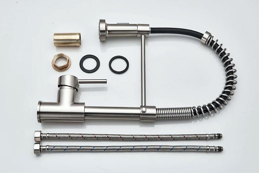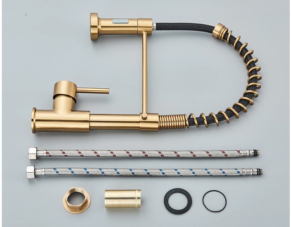 ברז מטבח עם צינור נשלף דגם נאפולי, בעל שני מצבי זרימה, הברז מרשים ודקורטיבי ונותן מראה יוקרתי למראה המטבח. ניתן למצוא את הברז הנשלף במגוון צבעים: ניקל מוברש, ניקל מבריק, זהב, שחור עם נגיעות זהב. מגיע באריזה מרשימה עם כל האביזרים הנדרשים להתקנתו כולל צינורות למים חמים ולמים קרים, גובה הברז 43 ס"מ. ברז מטבח נשלף שחור אלגנט נאפולי